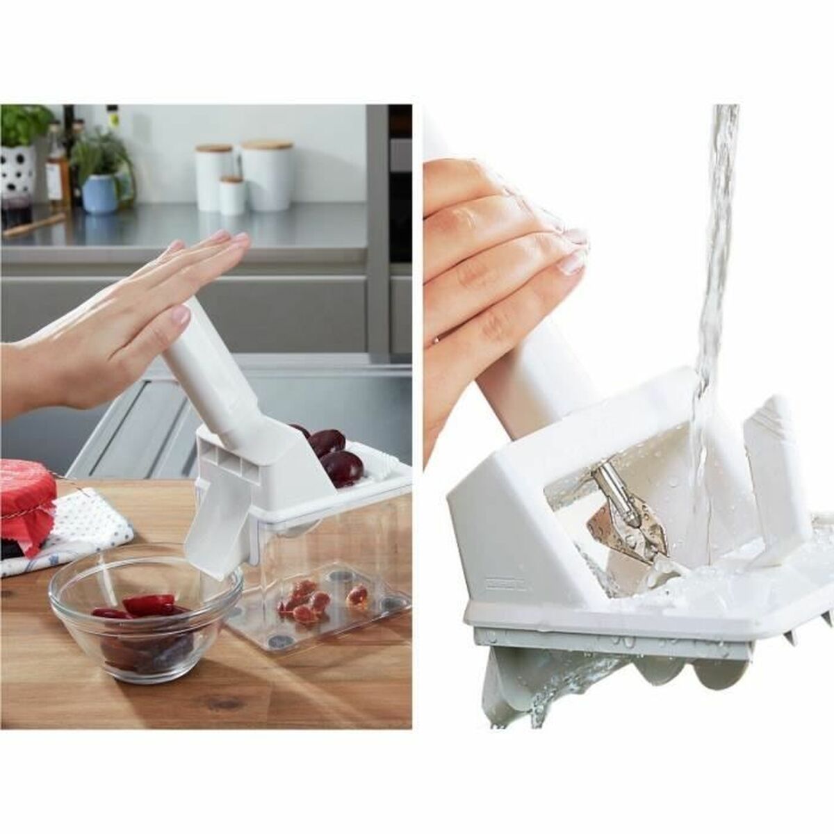 The Leifheit model 37300 pitter is a specialized tool designed to simplify and speed up the task of pitting plums, suitable for both domestic and professional use. This automatic device stands out for its white color and the combination of robust, durable materials such as stainless steel, which ensures corrosion resistance and long service life, along with steel components and ABS that provide lightness and ergonomics. Its construction allows easy handling of up to 15 kg of fruit, optimizing the process effortlessly and precisely, especially useful for preparations requiring the removal of the pit without damaging the flesh. Additionally, its design aims to offer a fast and comfortable experience, providing efficient operation that reduces the time spent on this task in the kitchen or food production. The Leifheit brand’s reputation is reflected in this product, which combines quality, ease of use, and carefully selected materials for reliable and durable performance. In short, the Leifheit 37300 pitter is a practical solution for those seeking a functional, sturdy, and efficient accessory for processing plums.