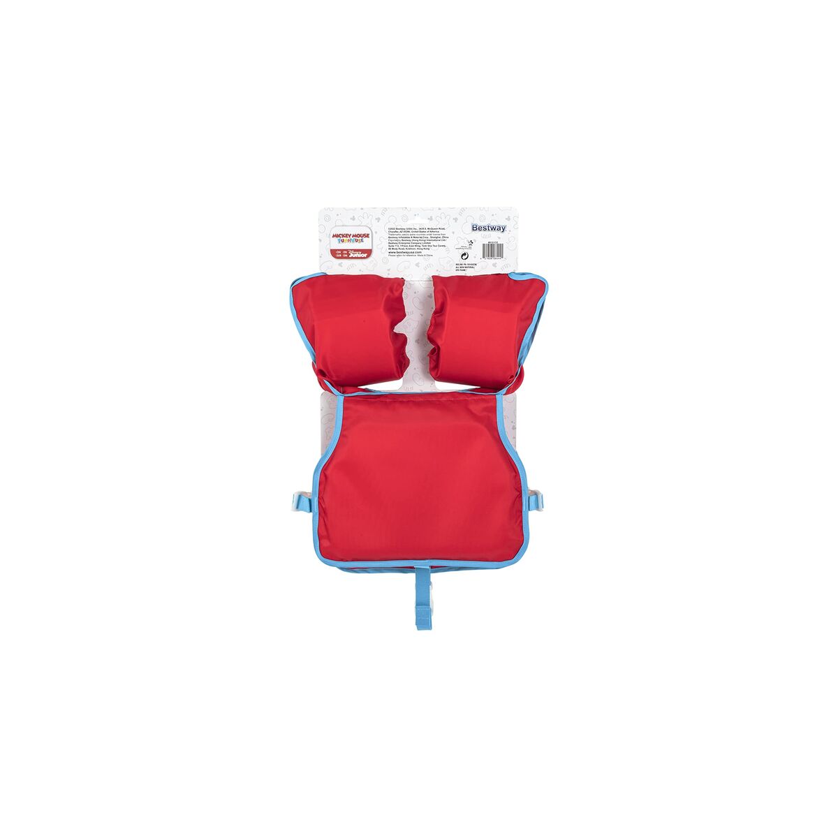 Get ready for summer with the charming armbands from Bestway, specially designed for children! With an appealing red color and a fun **Mickey Mouse** print, these armbands are the perfect accessory for kids to enjoy their days at the pool or beach. Made from soft foam that provides both comfort and buoyancy, they are ideal for helping children aged 3 to 6 years (19-30 kg) learn to swim safely and enjoyably. Thanks to their unisex design and size M/L, these armbands will fit your child's arms comfortably, providing the necessary safety while splashing under the sun. Additionally, they include a swimming vest that will further enhance the experience, allowing children to learn to rotate their arms and practice paddling with their hands in the water. Don't miss the chance to make every day in the water an unforgettable adventure; these armbands are the perfect choice for any little adventurer.